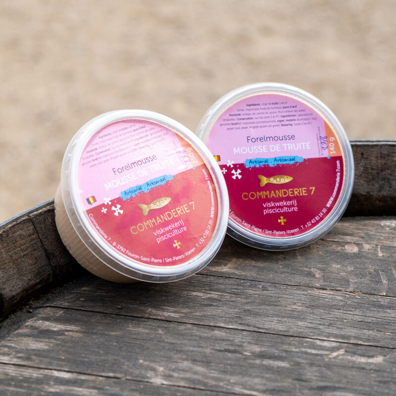Ingrédients : chair de truite cuite et fumée, mayonnaise (huile de tournesol, jaune d'oeuf, moutarde, vinaigre, sel, poivre), sel et poivre.